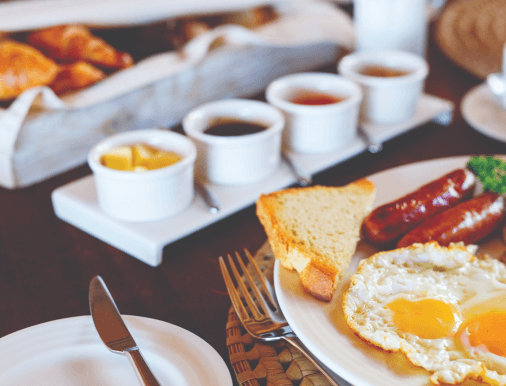 Priestor raňajkárne sme umiestnili na priečelie budovy s výhľadom a terasou, aby sme umocnili príjemný začiatok dňa.